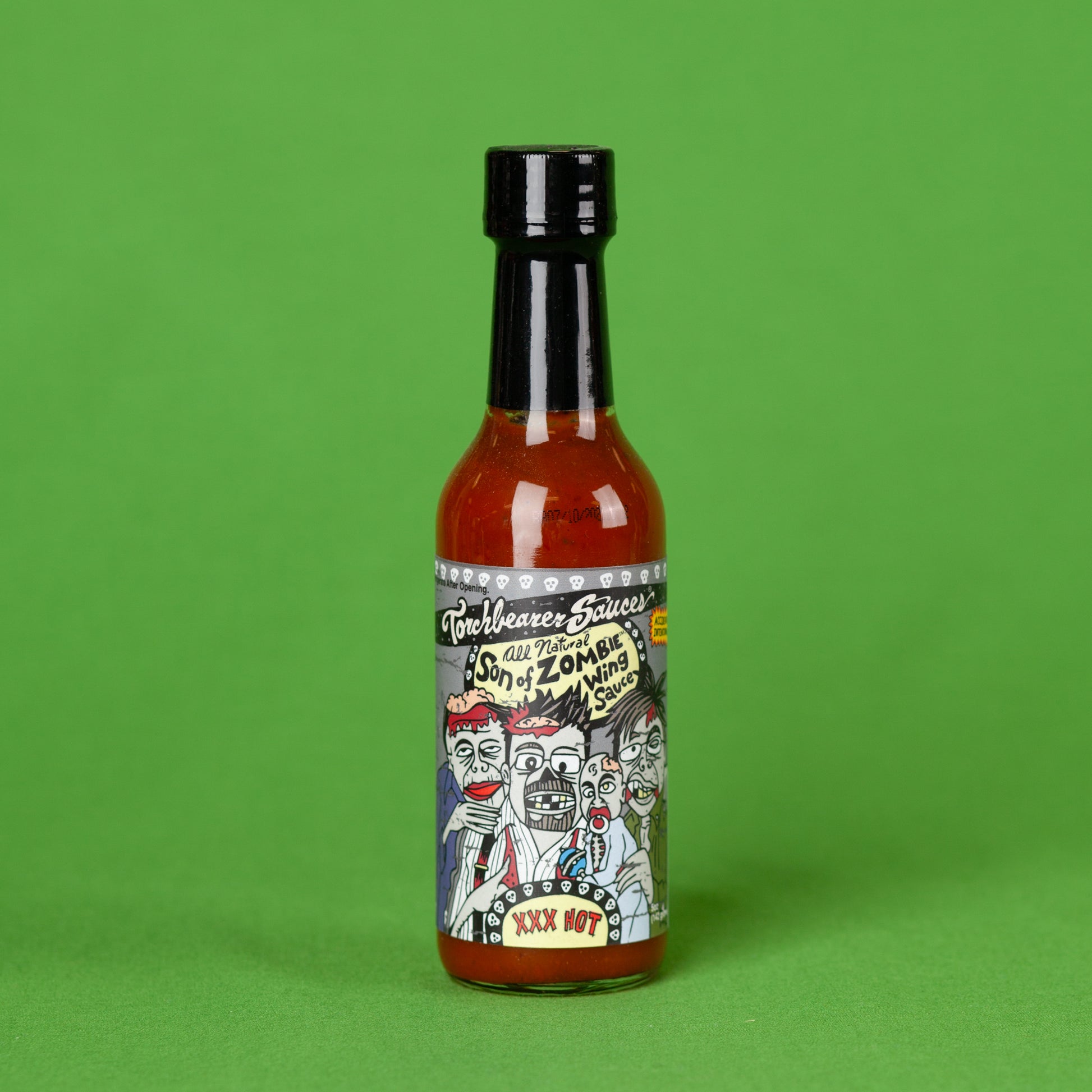 As featured on season 6 of Hot Ones, this spicy sauce is a mixture of 3 favorites from Torchbearer: Chipotle BBQ, Honey Garlic, and everyones favorite, the Zombie Apocalypse. Spice lovers love the flavor of this sauce. 5oz.